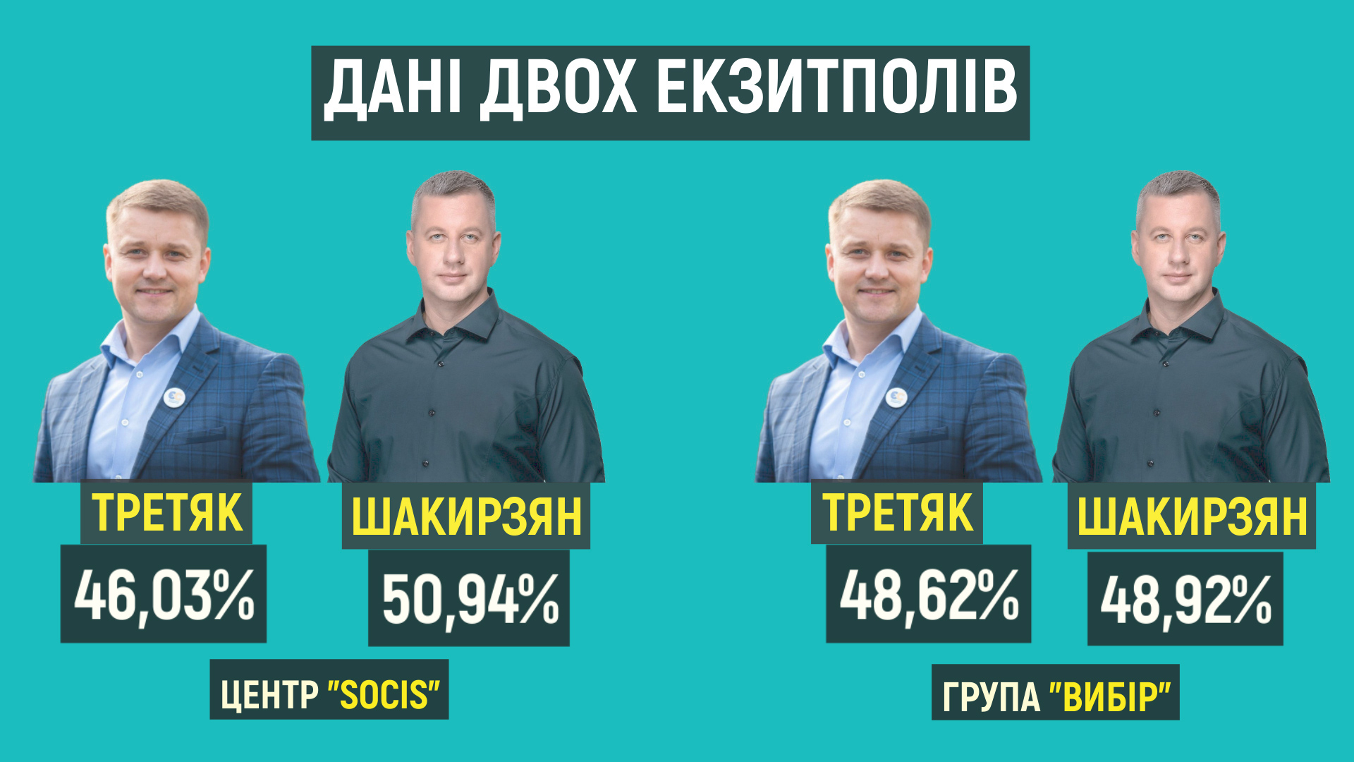 Згідно з результатами екзит-полу компанії «Социс», у другому турі переміг Шакирзян з результатом 50,94%. Екзит-пол групи "Вибір" показує розрив між кандидатами на рівні статистичної похибки 0,3%, передає «Суспільне».