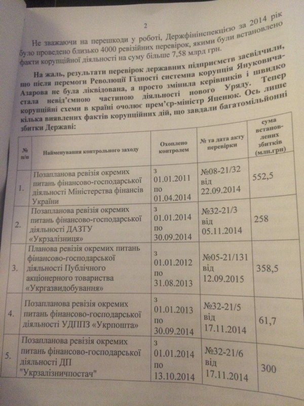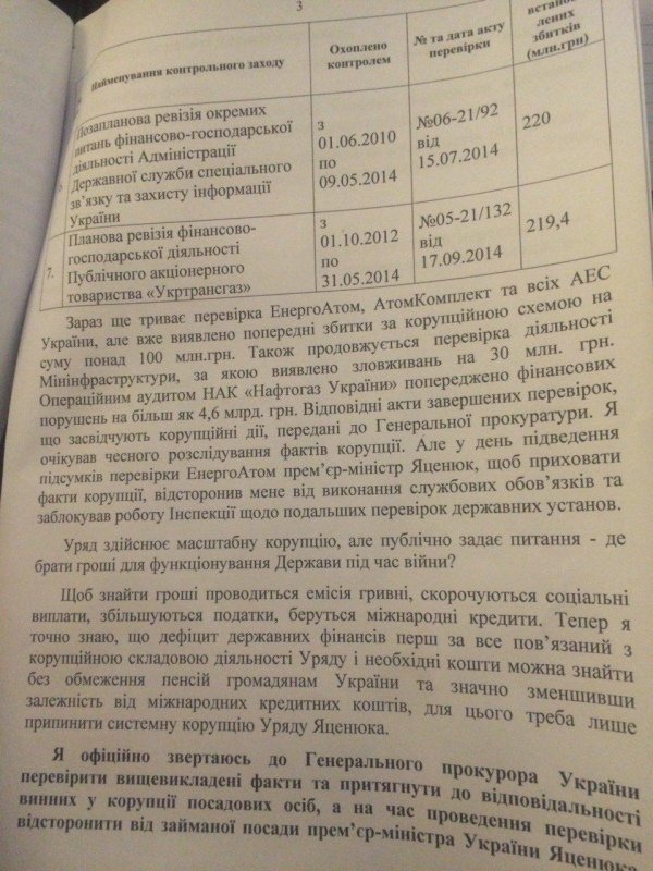 Чиновник підкреслив, що корупційні схеми на мільярди гривень було знайдено у процесі перевірки приватизації "Укртелекому". Він також додав, що уряд перешкоджає викриттю корупційних схем часів Миколи Азарова. Гордієнко звернувся з офіційною заявою до Генпрокуратури щодо перевірки діяльності уряду.