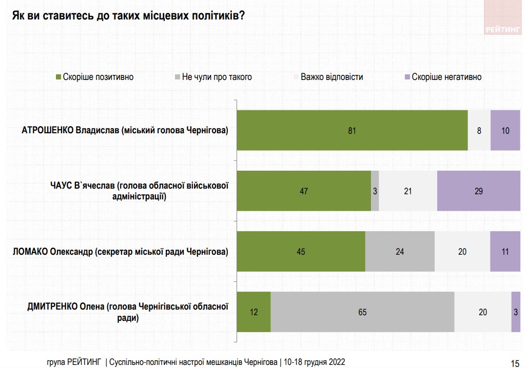Влітку петиція проти створення військової адміністрації в місті на сайті президента за лічені тижні набрала потрібні 25 тисяч голосів. Є результати соціології вже після початку воєнних дій. Мер, на відміну від багатьох силовиків та чиновників, які втекли, з першого дня вторгнення був у місті, і місто почало відновлюватися швидше, ніж усі очікували. Атрошенко отримав орден «За мужність», уся Україна відзначила Чернігів. І та ж таки соціологія показує понад 80 відсотків підтримки місцевої влади людьми, попри те, що на виборах за Атрошенка проголосувало 77,5%. Якби звинувачення були обґрунтовані, люди зреагували б інакше. В цій справі усім, навіть опонентам міського голови, зрозуміло, що це брудна політика.