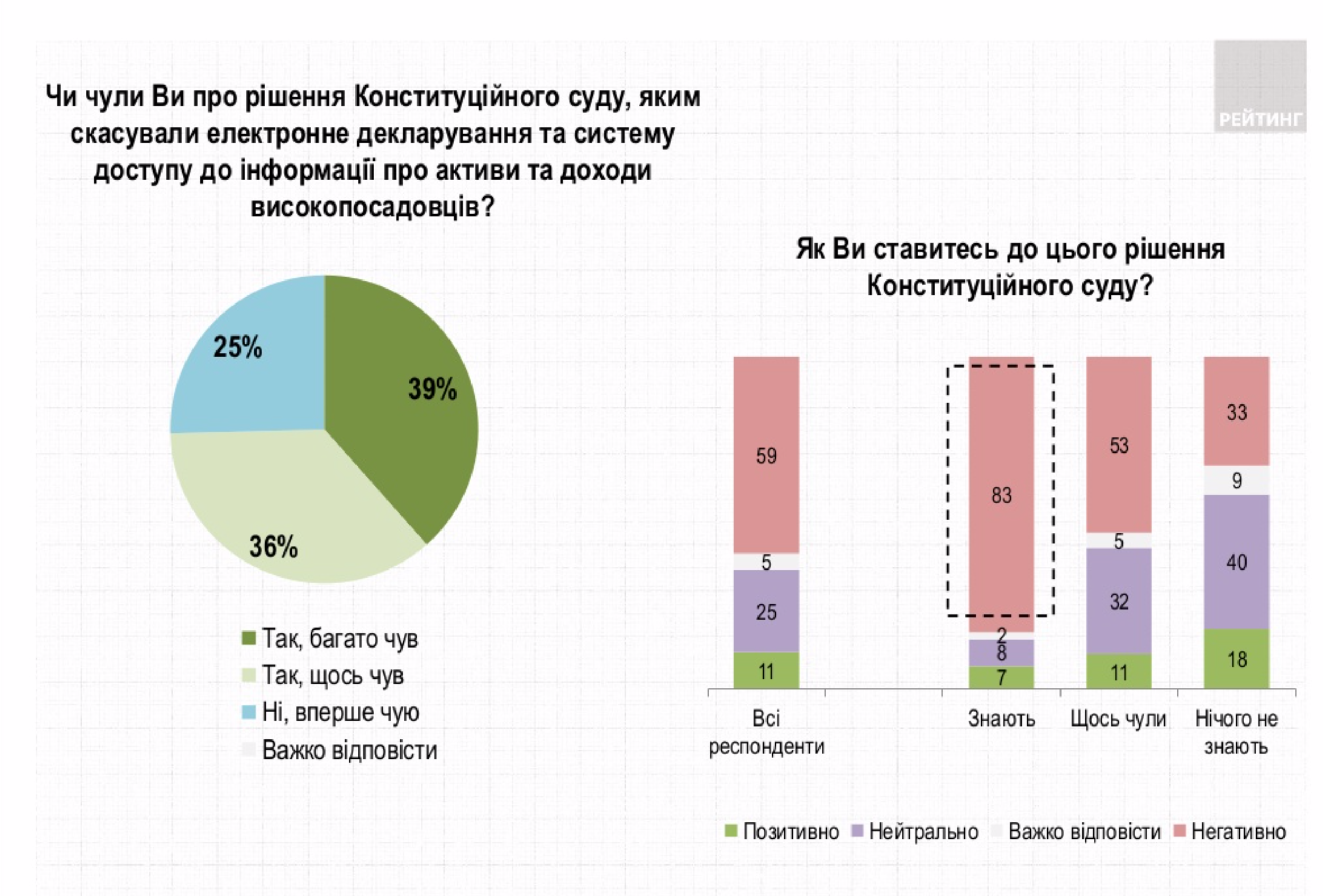 Серед тих, хто добре ознайомлений з рішенням КСУ, негативно ставляться до нього 83%.