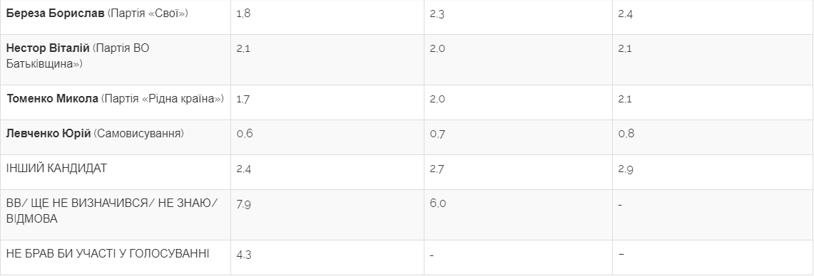 Підтримка інших кандидатів серед жителів міста нижча за 3%.