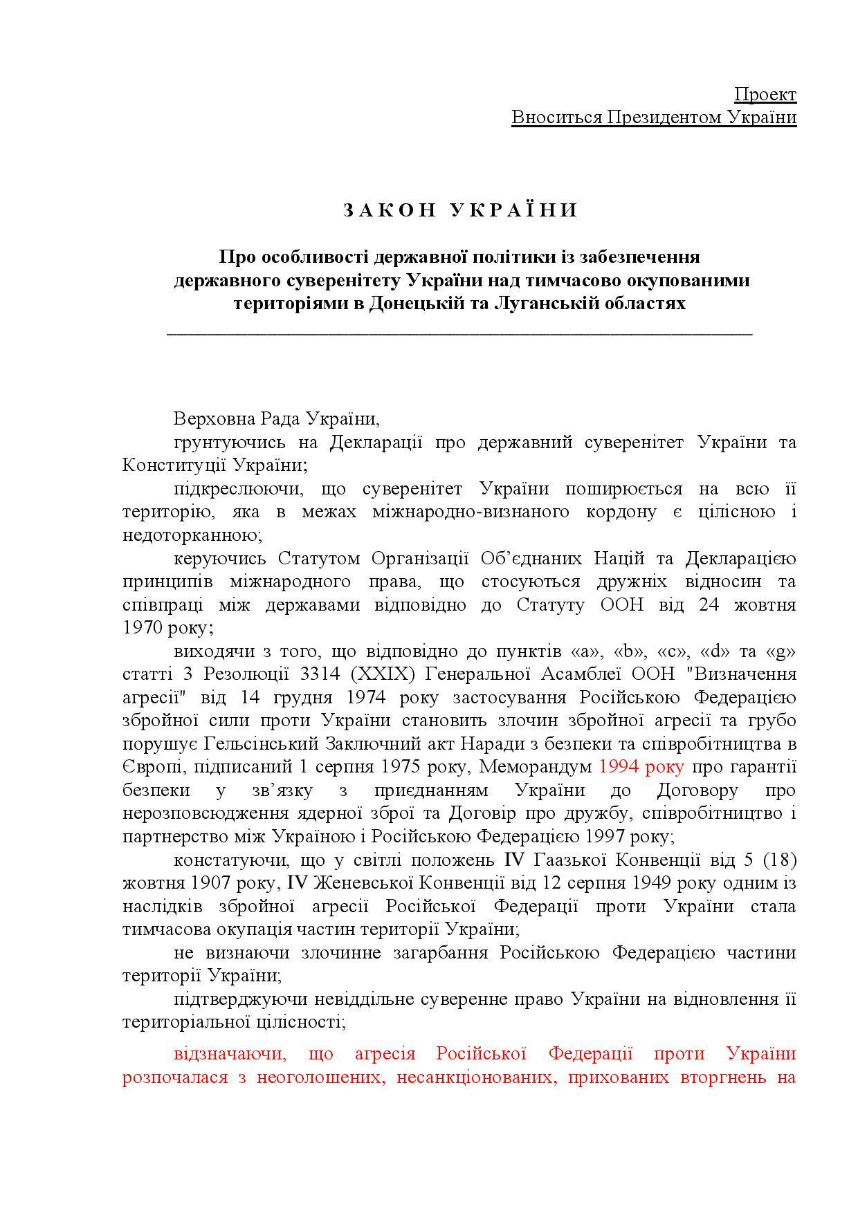 Віце-спікер Верховної Ради Оксана Сироїд опублікувала на своїй сторінці в Facebook ще одну версію законопроекту про реінтеграцію Донбасу.