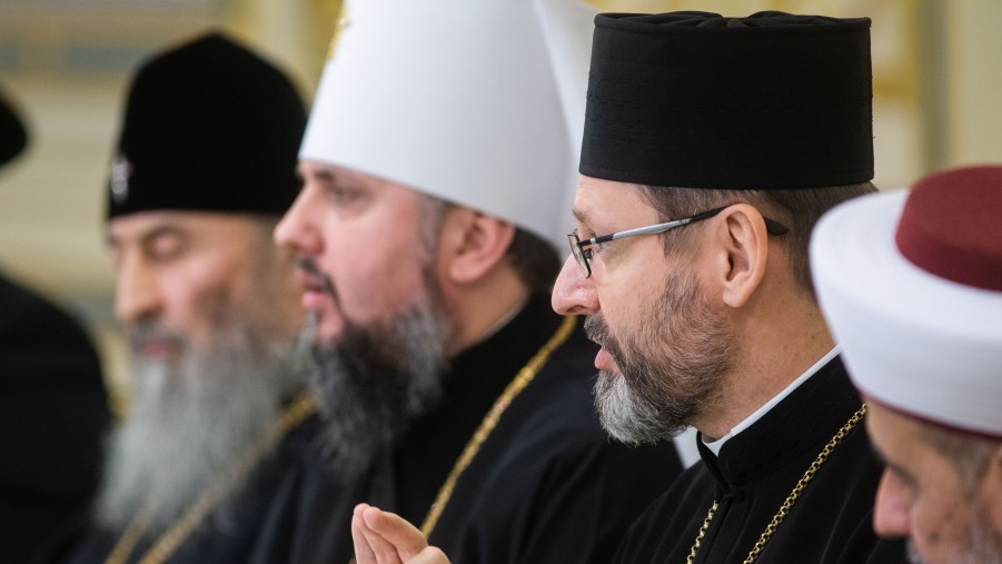 Глава держави подякував за спільне звернення ієрархів до жителів тимчасово окупованих територій, а також за роботу, яку проводять святі отці для українців. У зв'язку з переговорами лідерів країн Нормандського формату Президент закликав підтримати мирні ініціативи української сторони.
