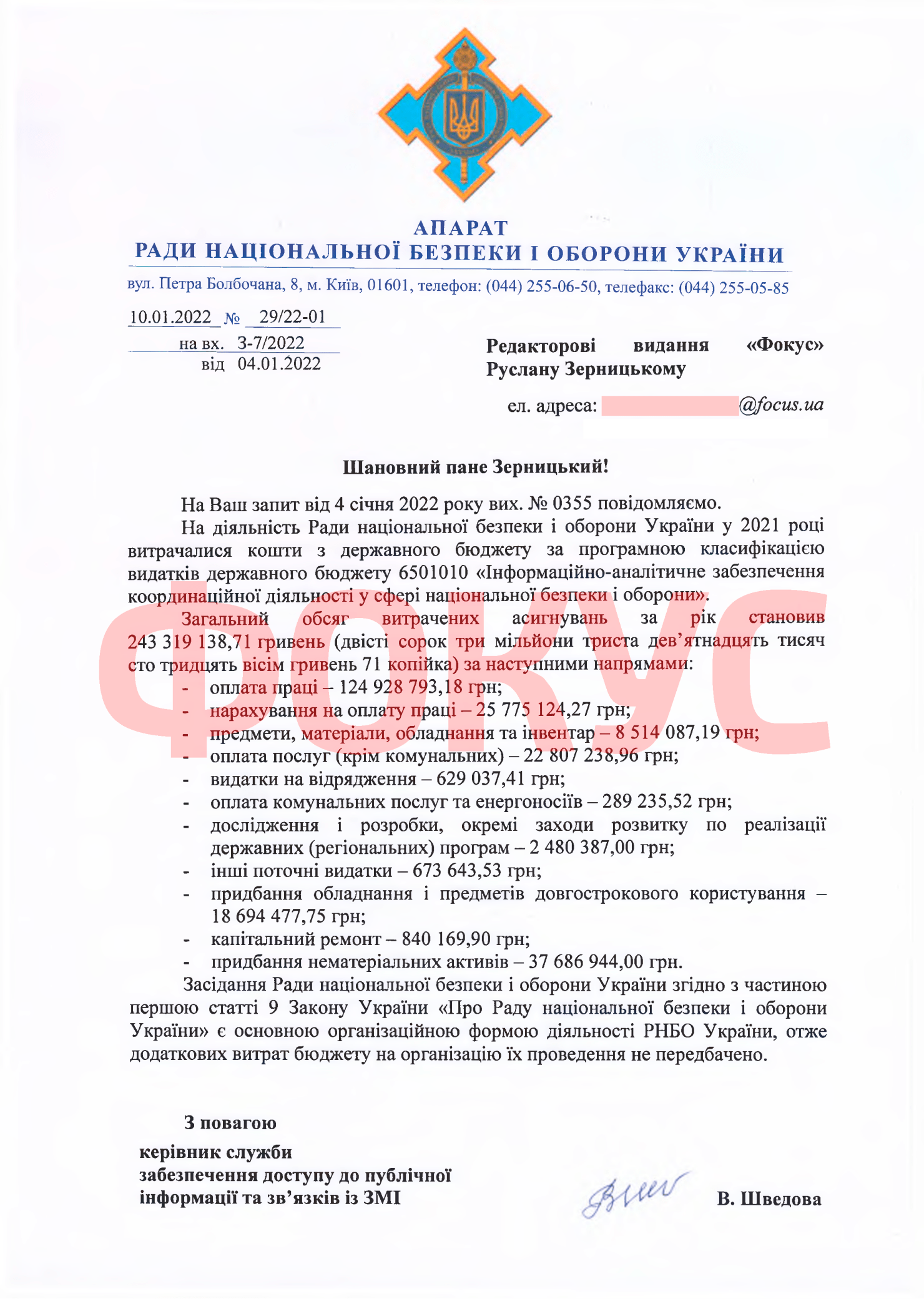 "Загальний обсяг витрачених асигнацій за рік становив 243 319 138,71 гривень", — ідеться у відповіді на запит.