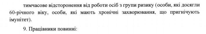 У ньому є норма (пункт 8): Тимчасове відсторонення від роботи у дитсадках осіб з груп ризику (тих, хто досяг 60-річного віку, і хто має хронічні захворювання, які пригнічують імунітет). Але це може призвести до проблем.