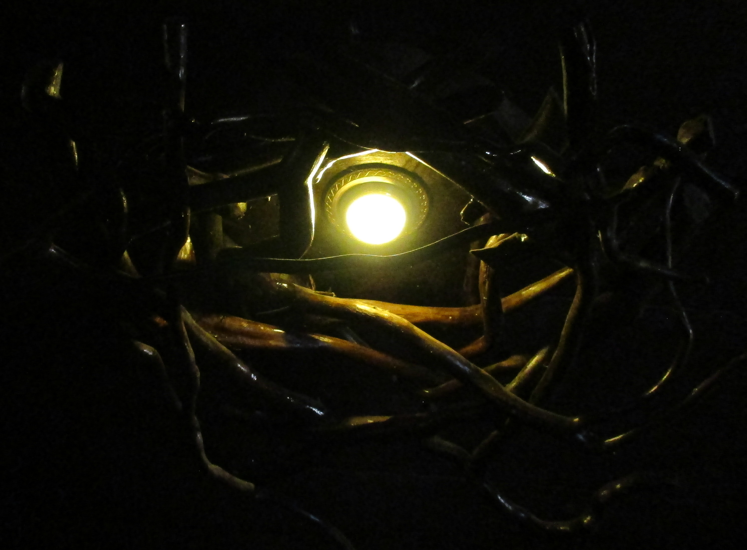 І тому, коли серед рекламних щитів на битій - у буквальному й переносному сенсах - дорозі бачиш раптом розриви блискавок на грозовому небі і напис "Музей гуцулскої магії" (друге слово так і написане - з місцевою вимовою), то поспішаєш туди як заворожений. Тим паче, що зазначена адреса: смт. Верховина, Жаб'євський потік, 66 - теж додає страшнуватої такої таємничості, в яку нестерпно хочеться проникнути. От хочеться - і все. Навіть коли згадана вулиця пощораз ніби закінчується, а того демонічного номера все нема і нема, - ти вбачаєш у цьому якийсь потойбічний знак. І тут нарешті хатинка майже на курячих ніжках, оточена всіма можливими ознаками магії - і котами, і пеньками, і костурами, й ще хтозна чим, але точно казковим. Усе це зроблено з дерева, проте хто знає, на що живе воно може перетворитися якоїсь вальпургієвої ночі?!