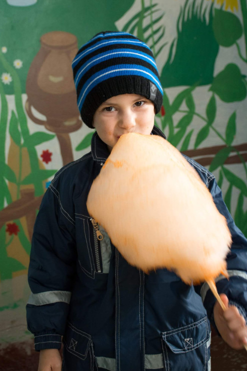 Свято в самому розпалі, з двору "ллється пісня на просторі, вільна, сильна, наче море, про мій милий рідний край…", а діти все частіше поглядають на розкочегарений апарат, який от-от видасть невагомі біло-голубі й рожево-салатові хмаринки на паличці.