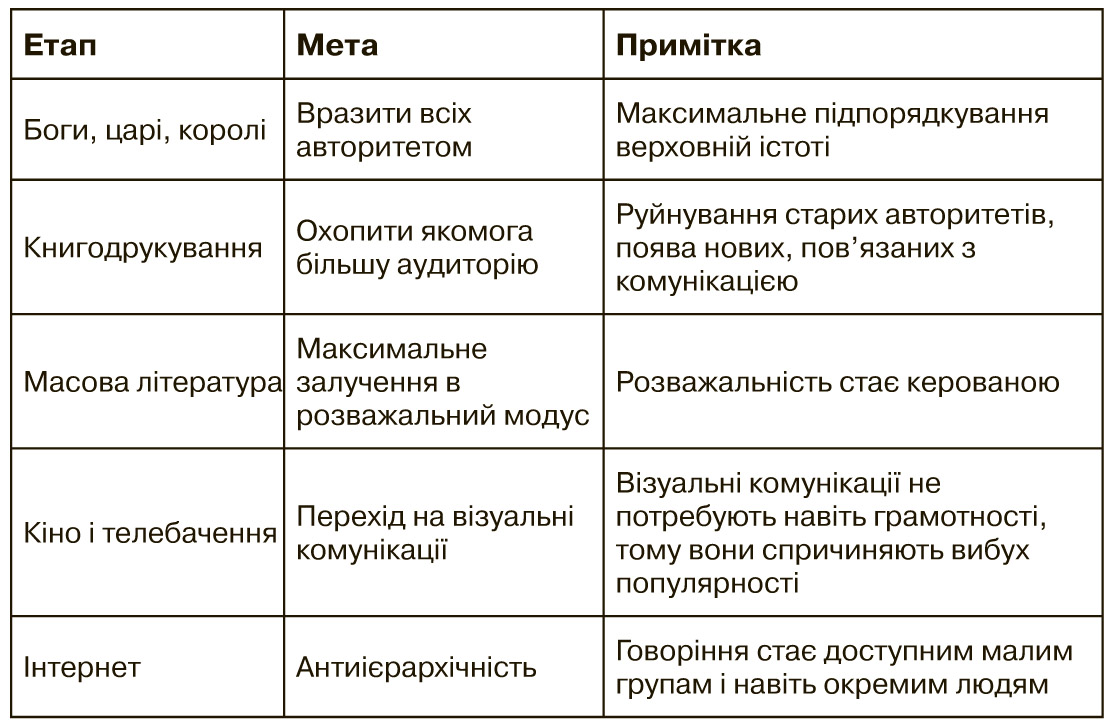 ХХ століття завершило ситуацію соціального управління, створивши масову людину, масову культуру і масову комунікацію. Ми всі почали дивитися ті ж фільми, читати й дивитися ті ж новини, захоплюватися тими ж книжками. І вже з дитинства кожен знає все про Гаррі Поттера і майже нічого про астрономію, якщо її немає в програмі середньої школи.