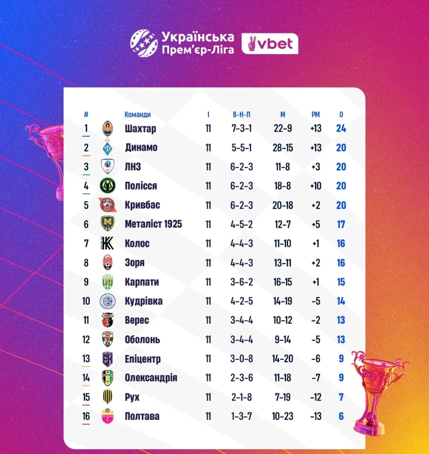 З 31 жовтня по 2 листопада проходили матчі 11-го туру української Прем'єр-ліги з футболу сезону-2025/26.