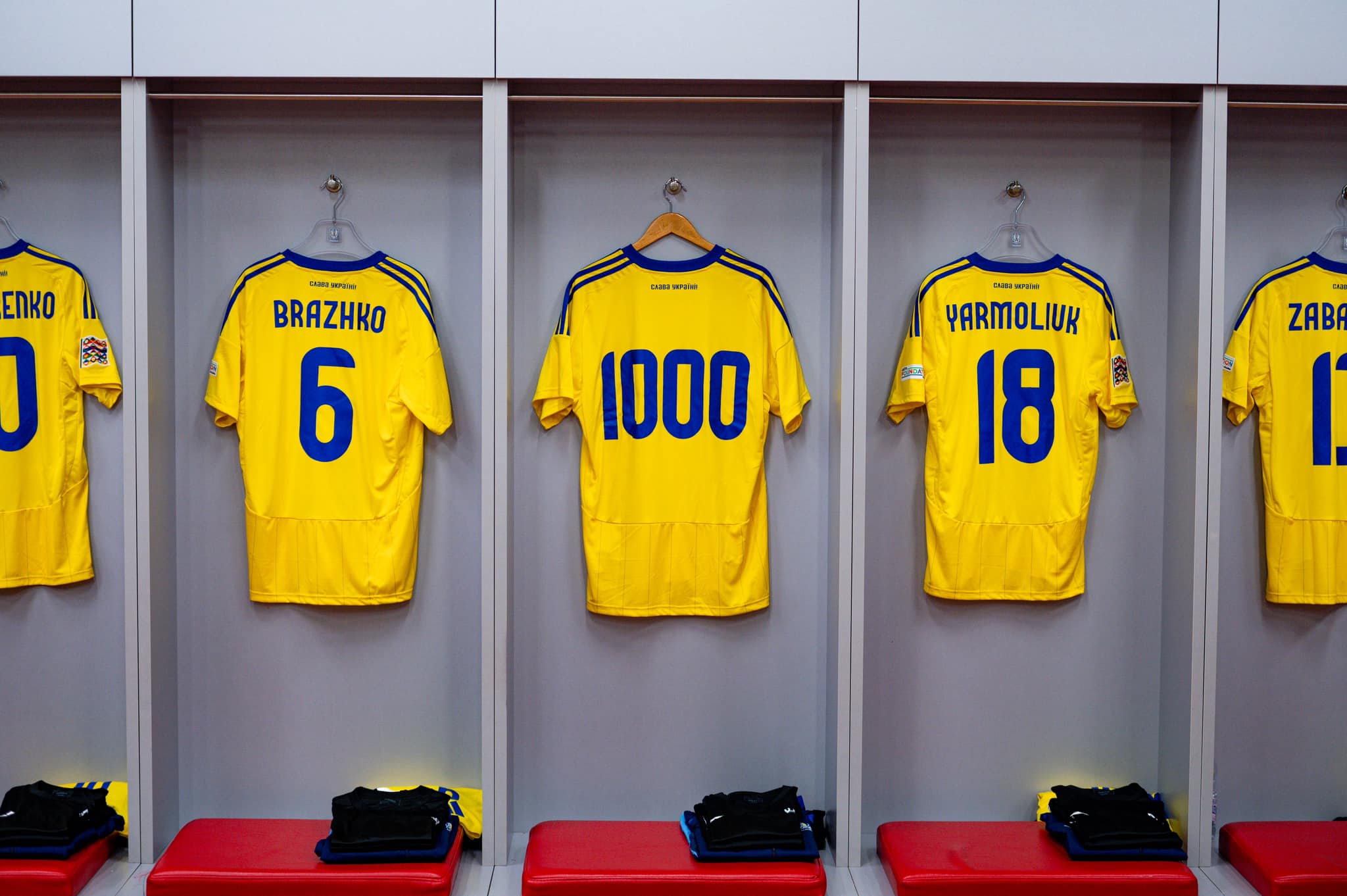 Матч пройде у тисячний день повномасштабної війни з РФ. Ось така футболка висить у роздягальні збірної України.