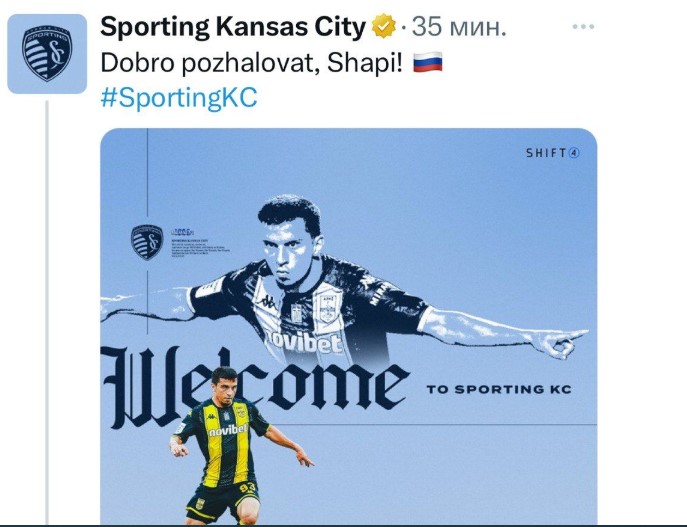 Трансфер російського футболіста в клубі зі США у соціальних мережах оголосили фразою "Ласкаво просимо, Шапі!", написаною латиницею.