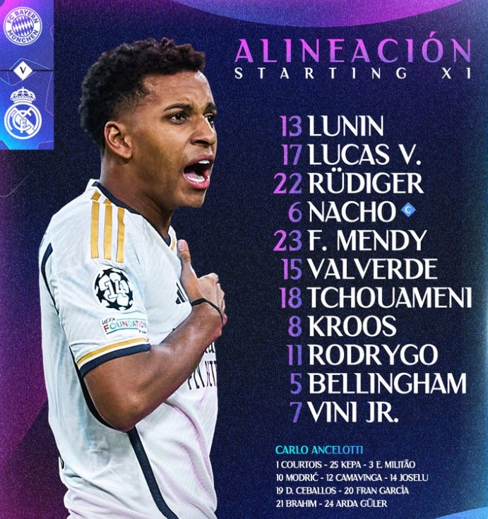 "Реал": Лунін, Васкес, Рюдігер, Начо, Менді, Вальверде, Чуамені, Кроос, Родріго, Беллінгем, Вінісіус Жуніор