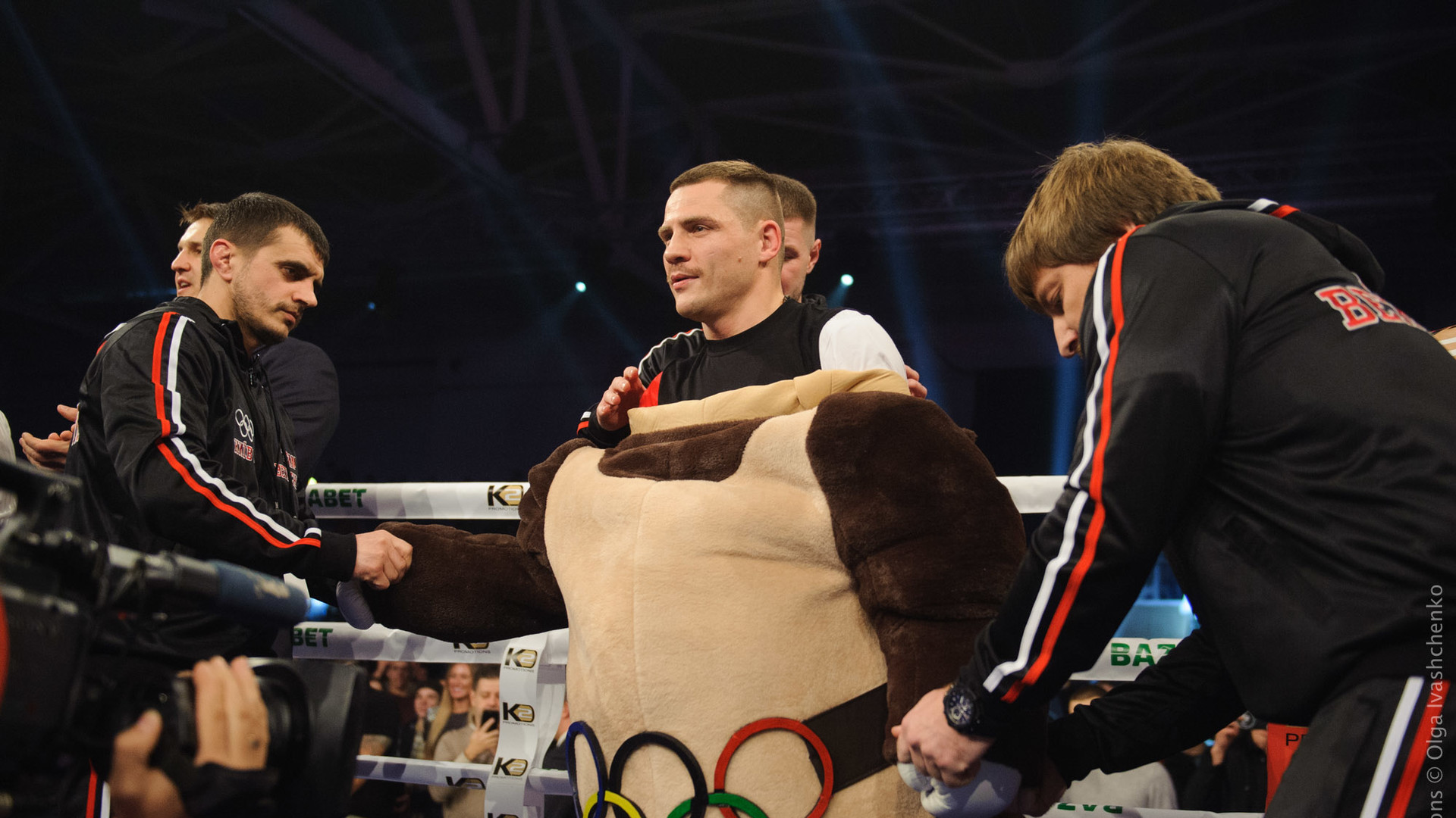 Раніше повідомлялося, що Берінчик вийшов на бій у костюмі олімпійського ведмедика.