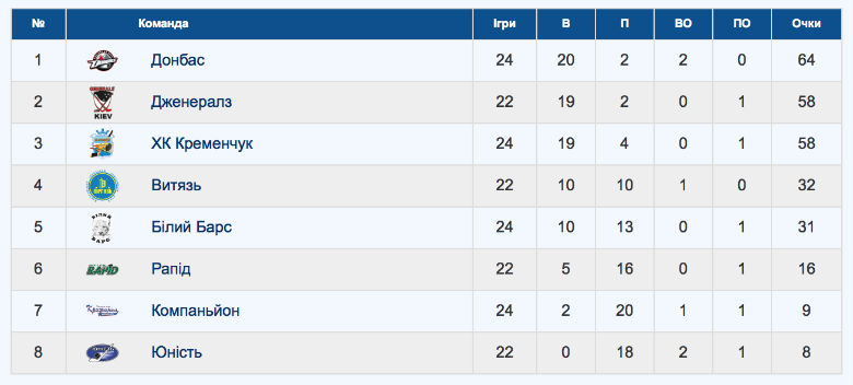 Підходить до кінця перший етап чемпіонату України з хокею. Одноосібним лідером турнірної таблиці залишається "Донбас".