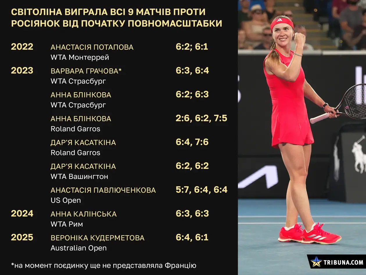 Це вже дев'ятий матч проти представниці РФ від 24 лютого 2022 року та дев'ята перемога.