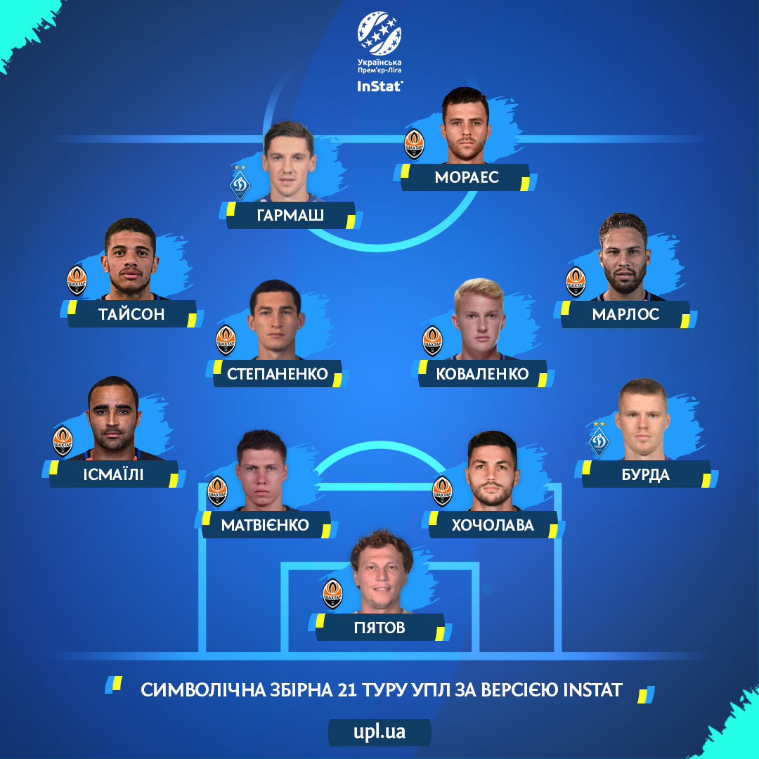 Українська Прем'єр-ліга опублікувала символічну збірну 21-го туру української Прем'єр-ліги за версією InStat.