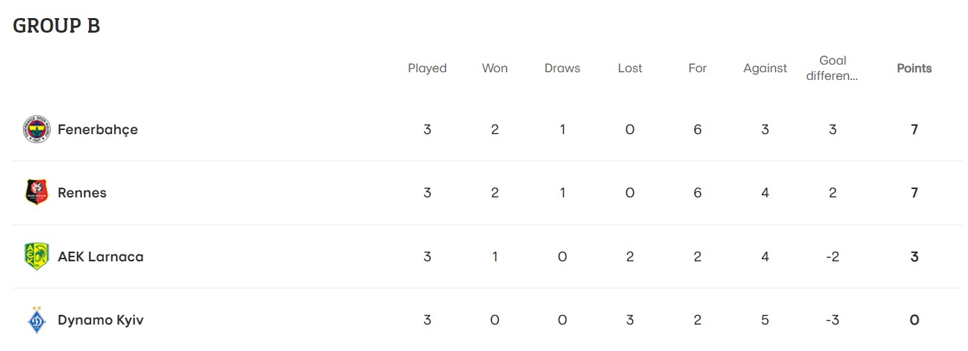 "Динамо" вперше у своїй історії зазнало трьох поспіль поразок на старті Ліги Європи. Кияни залишаються на останньому місці в групі B. Наступний матч у ЛЄ динамівці проведуть також проти "Ренна" у Польщі 13 жовтня.