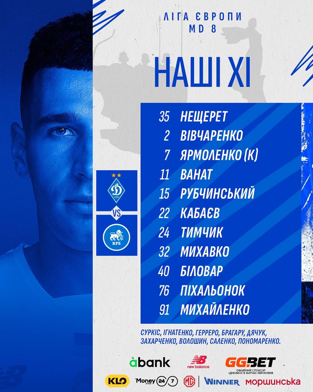 "Динамо": Нещерет, Тимчик, Біловар, Михавко, Вівчаренко, Пихальонок, Михайленко, Рубчинський, Ярмоленко, Ванат, Кабаєв.