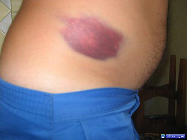 3) Оцініть ці "витвори мистецтва" (дивіться фото з синцями), які залишили Ваші співробітники, з точки зору інструкції щодо застосування спецзасобів. Чи має право працівник міліції використовувати ПР таким чином?