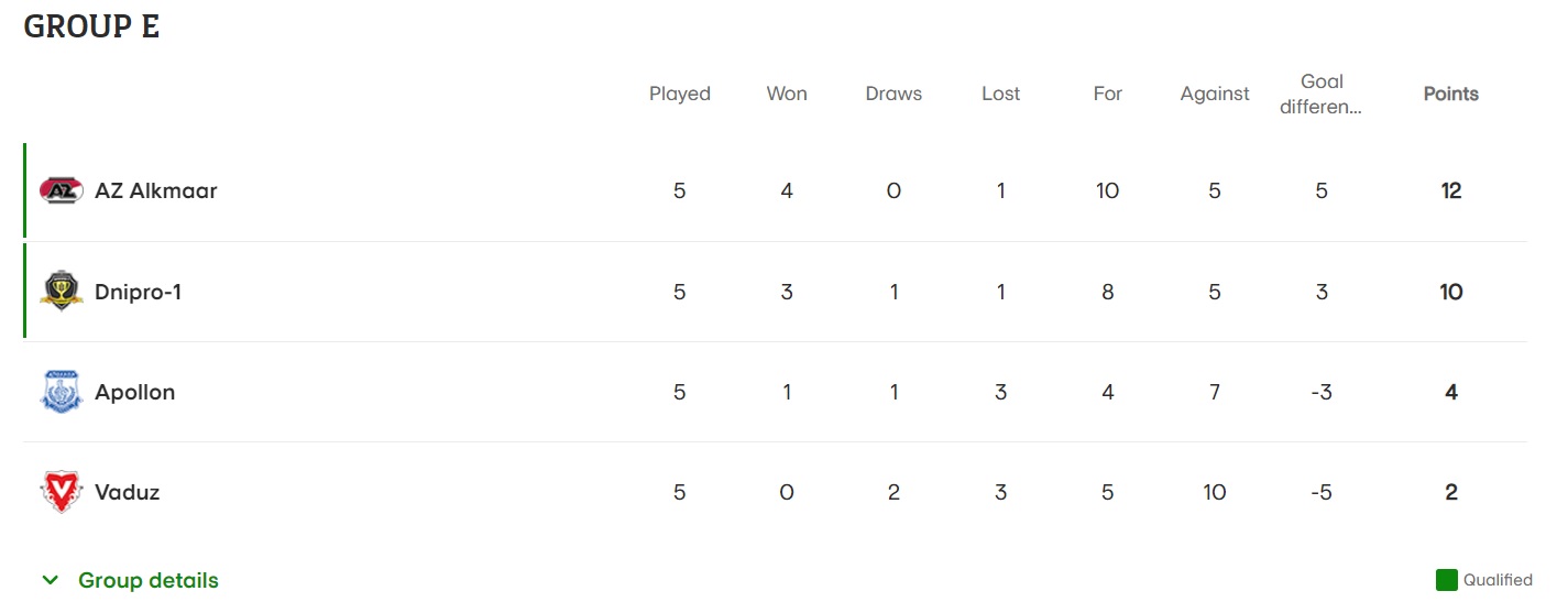 "Дніпро"-1 набрав 10 очок у п'яти матчах своєї групи і вже точно не опуститься нижче за другий рядок.