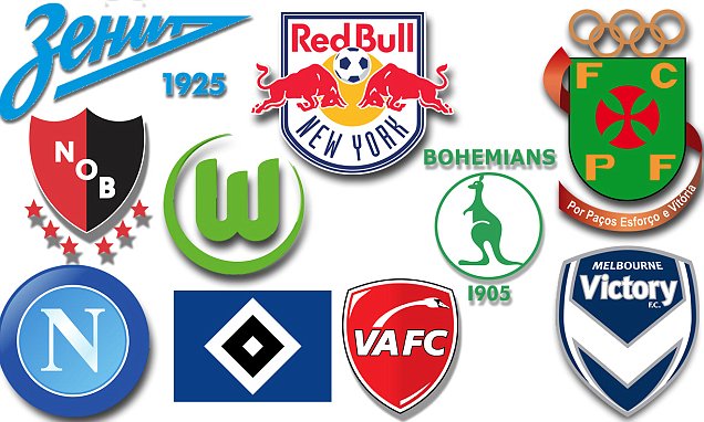 За версією Daily Mail, в десятку найгірших логотипів увійшли емблеми наступних команд: "Наполі" (Італія), "Мельбурн Вікторі" (Австралія), "Зеніт" (Росія), "Вольфсбург" (Німеччина), "Пасуш де Феррейра" (Португалія), "Богеміанс" (Чехія), "Ньюеллс Олд Бойз" (Аргентина), "Валансьєн" (Франція), "Гамбург" (Німеччина), а також "Нью-Йорк Ред Буллз" (США).