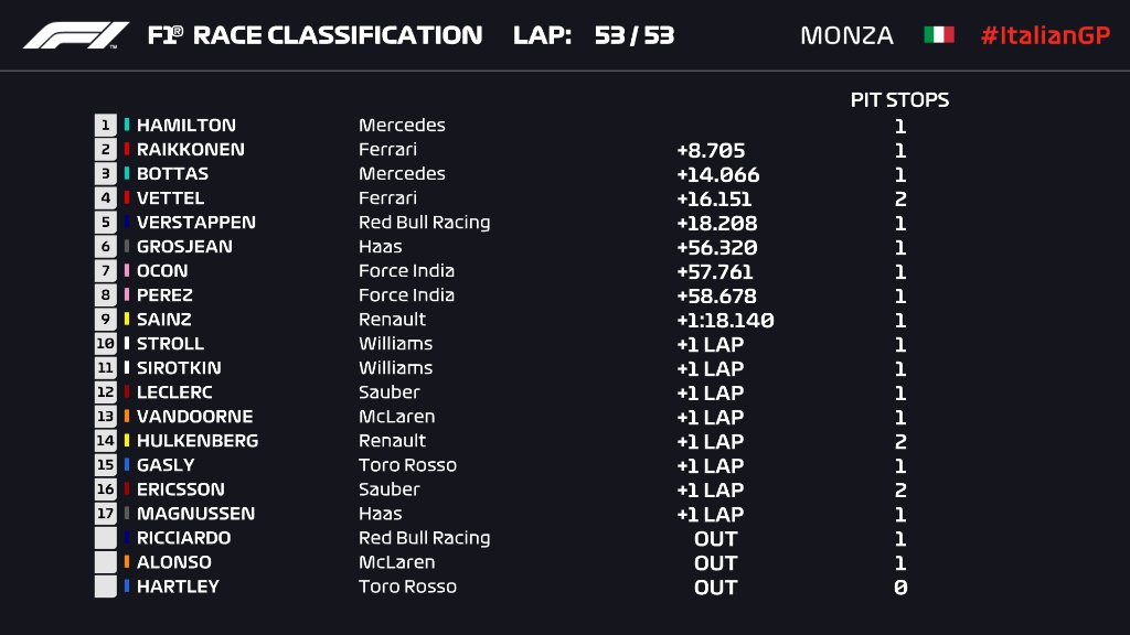 Пілот "Мерседеса" Льюїс Хемілтон виграв 14-й етап чемпіонату світу з Формулі-1 - Гран-прі Італії.