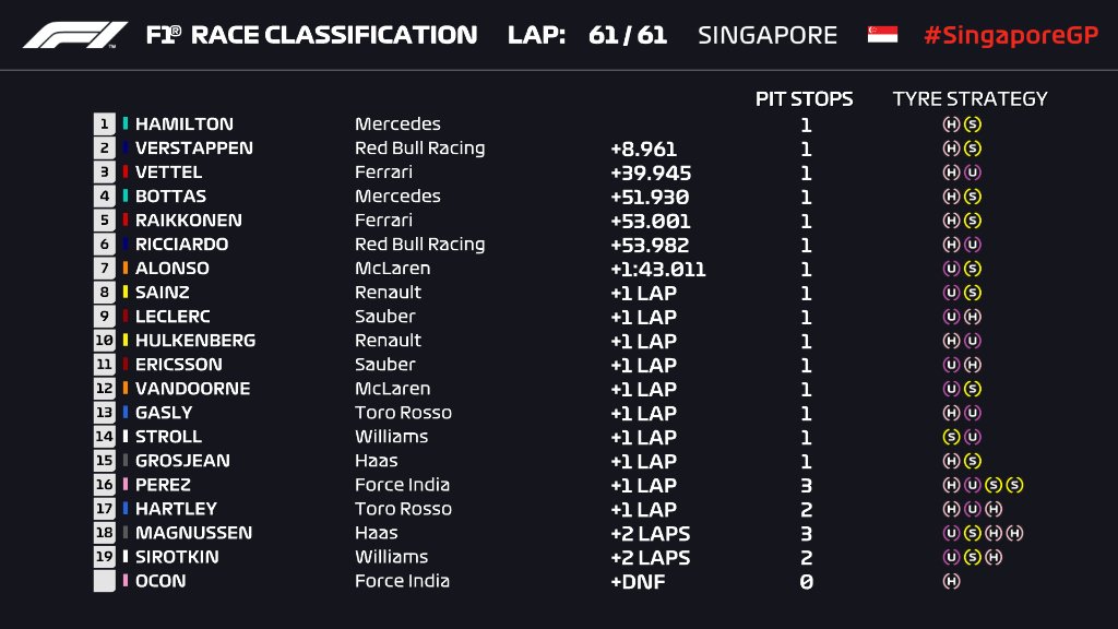 Свого найближчого переслідувача в особі Макса Ферстаппена Хемілтон випередив на 8 секунд. Замкнув трійку Себастьян Феттель, який програв британцеві майже 40 секунд.