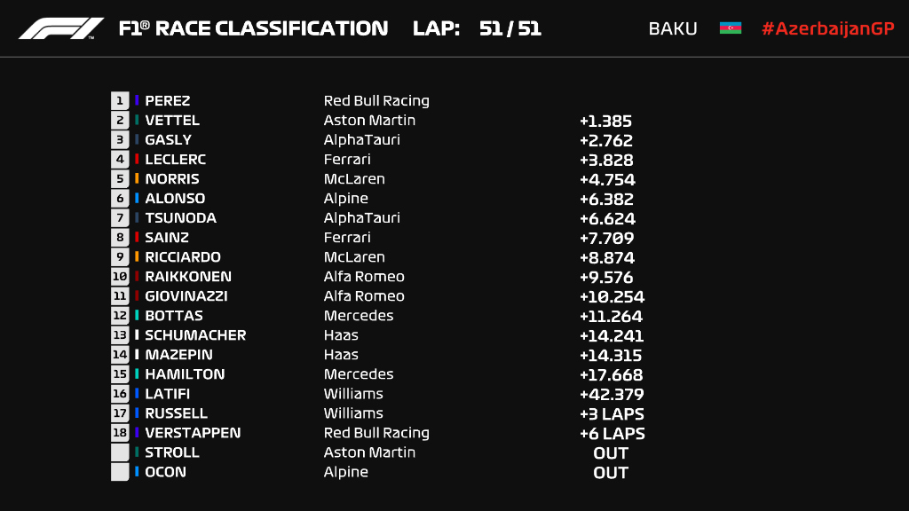 Відзначимо, що до фінішу не дістався лідер загального заліку Макс Ферстаппен, а головна зірка гонок Льюїс Хемілтон посів лише 15-е місце.