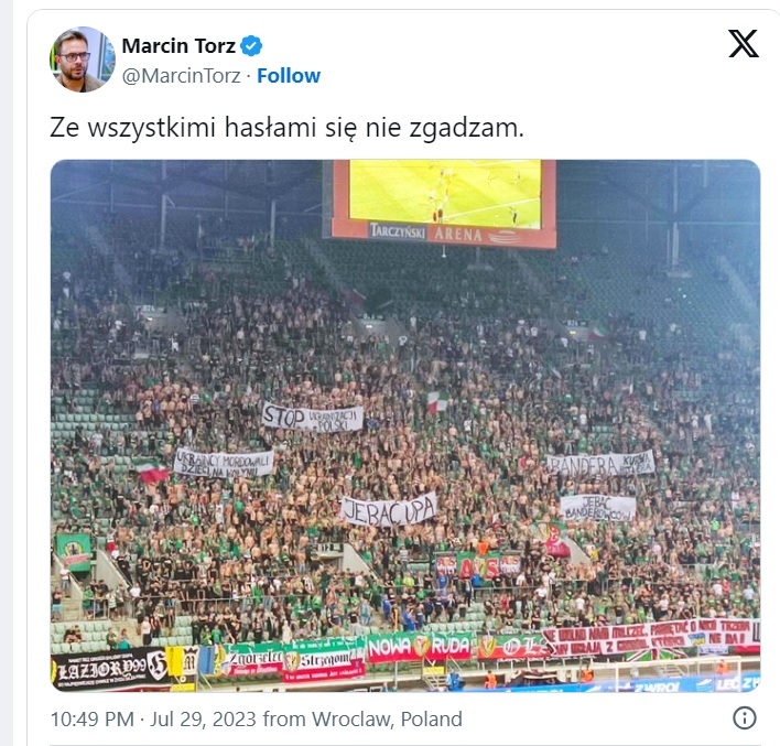 На матчі 2-го туру чемпіонату Польщі "Шльонськ" – "Заглембе" (1:2) ультрас господарів вивісили антиукраїнські банери.