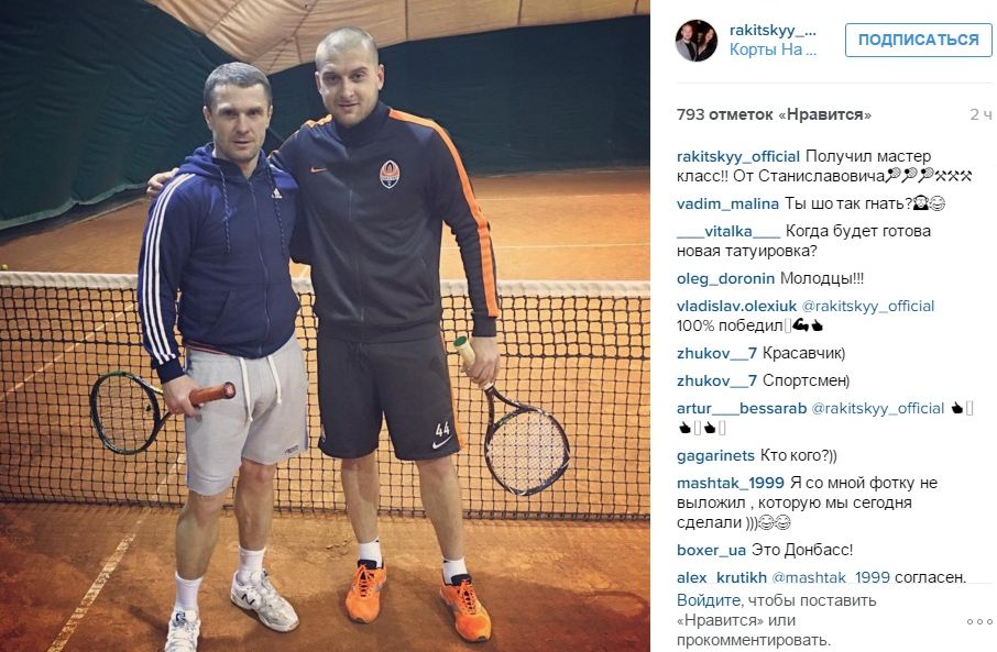 Тренер і футболіст зустрілися на одному зі столичних кортів. Спільне фото на своїй сторінці в Instagram додав Ракицький. "Отримав майстер-клас! Від Станіславовича!", - написав захисник "гірників".