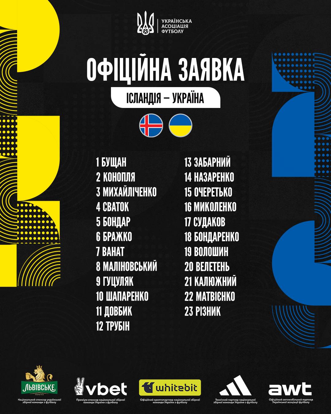 Україна: Трубін, Конопля, Забарний, Матвієнко, Миколенко, Гуцуляк, Маліновський, Калюжний, Шапаренко, Судаков, Ванат.