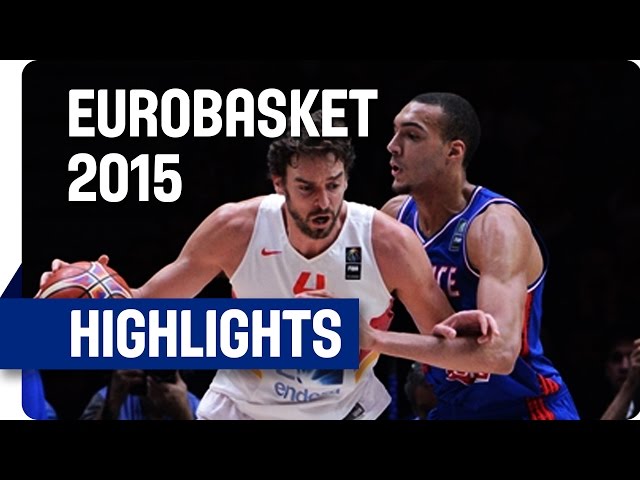 Першими у півфінал пробилися іспанці, які в неймовірному за напругою поєдинку обіграли чемпіонів Європи-2013 збірну Франції, змусивши господарів паркету і їх уболівальників в буквальному сенсі пролити море сліз. Цей матч встановив новий рекорд відвідуваності баскетбольних матчів у Європі - 26 тисяч 922 глядача. Доля зустрічі вирішилася в овертаймі, а неймовірний Пау Газоль набрав 40 очок при 11 підборах.