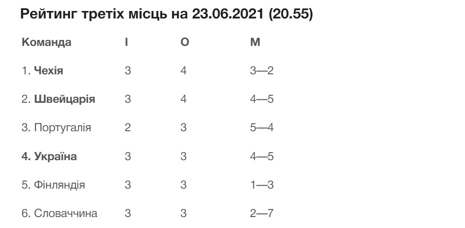 ZN.UA представляє вашій увазі актуальну таблицю третіх місць всіх груп Євро-2020.