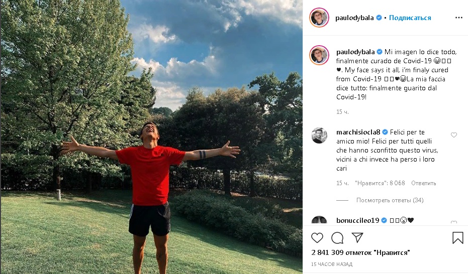 "Моє обличчя говорить про все. Я нарешті вилікувався від СOVID-19", - написав Пауло на своїй сторінці в Instagram.