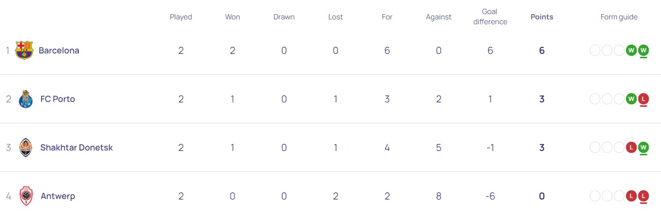 У середу, 4 жовтня, проходили матчі другого туру групового етапу Ліги чемпіонів у квартетах E, F, G та H.