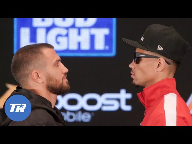 Український легковаговик Василь Ломаченко (16-2, 11 КО) та Джемейн Ортіс (16-0-1, 8 КО) провели битву поглядів перед боєм.