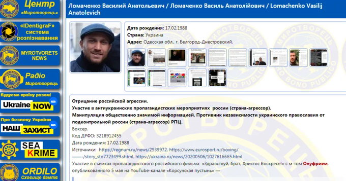 Дані боксерів поміщені в розділ "Чистилище", у який потрапляють люди, які вчинили антиукраїнські дії.