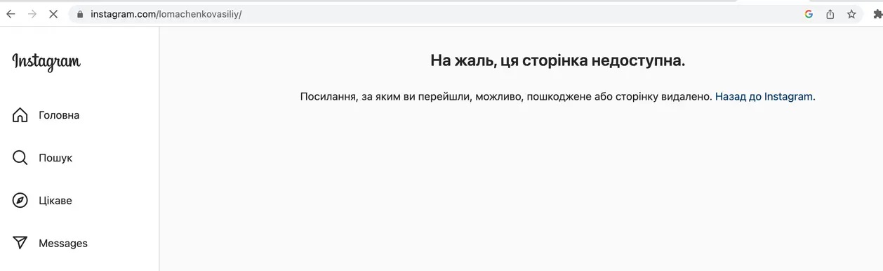 Сторінка в Instagram колишнього чемпіона світу у трьох дивізіонах Василя Ломаченка (17-2, 11 КО) більше не відображається на території України.