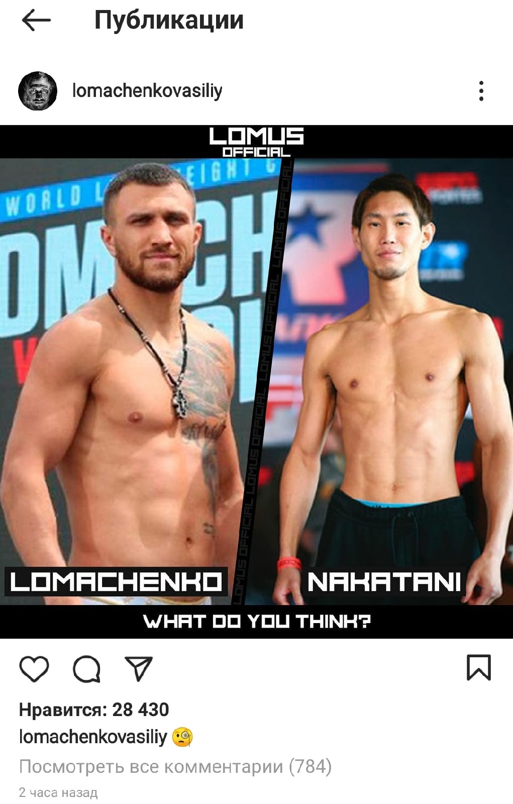 Український боксер Василь Ломаченко (14-2, 10 КО) на своїй сторінці в Instagram запитав у вболівальників з приводу свого можливого майбутнього суперника.
