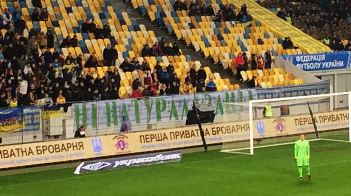 На одному з секторів вболівальники вивісили банер, на якому було написано: "Ні натуралізації".