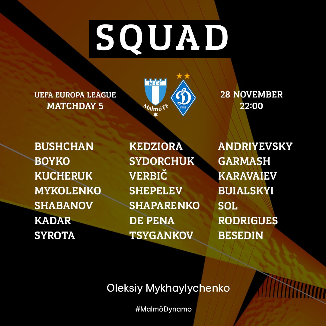 Віце-чемпіон України "Динамо" зустрінеться в Швеції проти "Мальме". Після чотирьох зіграних турів "Динамо" і "Копенгаген" ділять першу сходинку у групі, набравши по шість очок. "Мальме" йде слідом, маючи в своєму активі на одне очко менше, а замикає квартет швейцарський "Лугано" (2 очки).