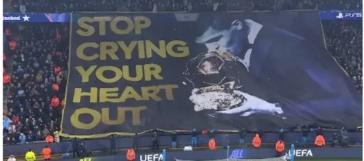 Уболівальники господарів перед початком поєдинку продемонстрували банер із півзахисником команди Родрі та "Золотим м'ячем".