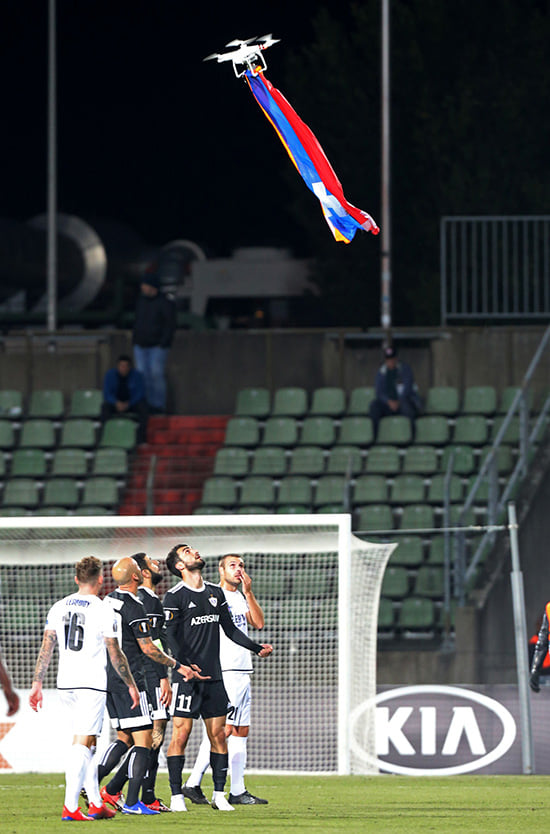 Футболіст "Карабаху" намагався збити дрон м'ячем, але не потрапив, тренер гостей забрав команду з поля. Через п'ять хвилин матч відновився, а "Карабах" у підсумку зумів перемогти з рахунком 4:1.
