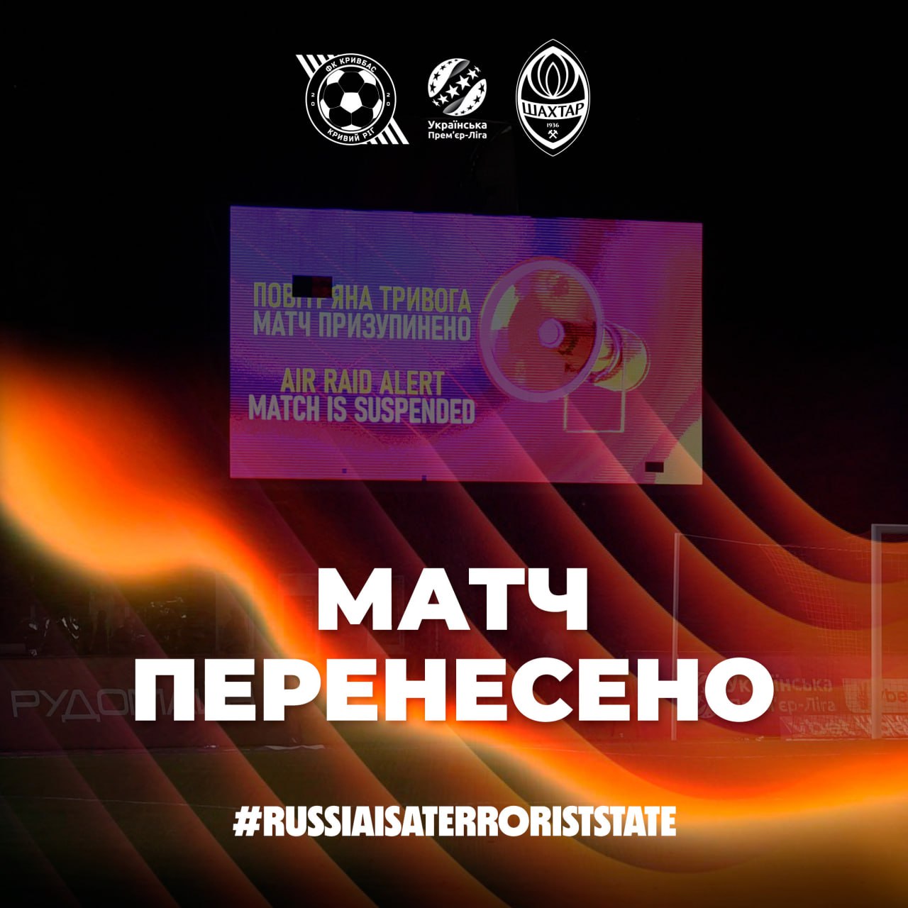 Поєдинок у Кривому Розі на стадіоні "Гірник" стартував о 18:00, а на 50-й хвилині був перерваний через повітряну тривогу на Дніпропетровщині.