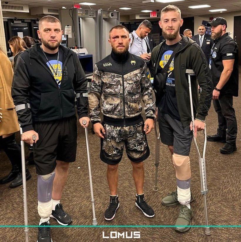 На вечорі боксу у "Медісон Сквер Гарден" за перемогою української легковаговика спостерігали наші поранені військові, повідомляє Telegram-канал Ломаченко. Після бою вони зустрілися з Василем та Олександром Усиком.