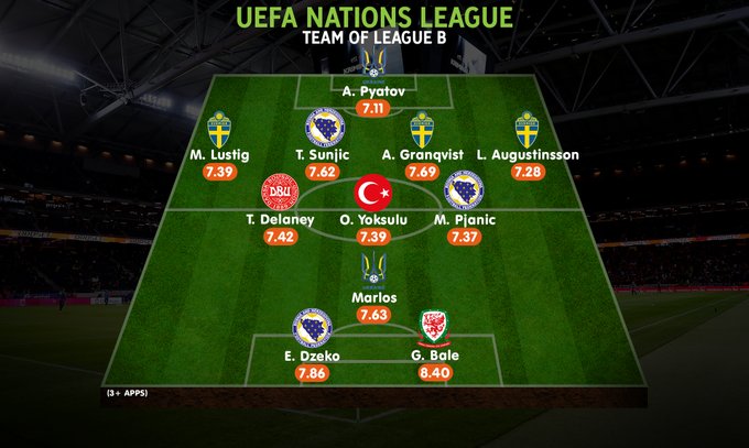 Середня оцінка П'ятова - 7,11 бала, у Марлоса - 7,63. П'ятов зіграв у трьох матчах Ліги націй, в яких пропустив лише один гол. В останньому матчі турніру проти Словаччини П'ятов поступився місцем на полі Денису Бойку з "Динамо". Марлос також провів три матчі в рамках Ліги націй.