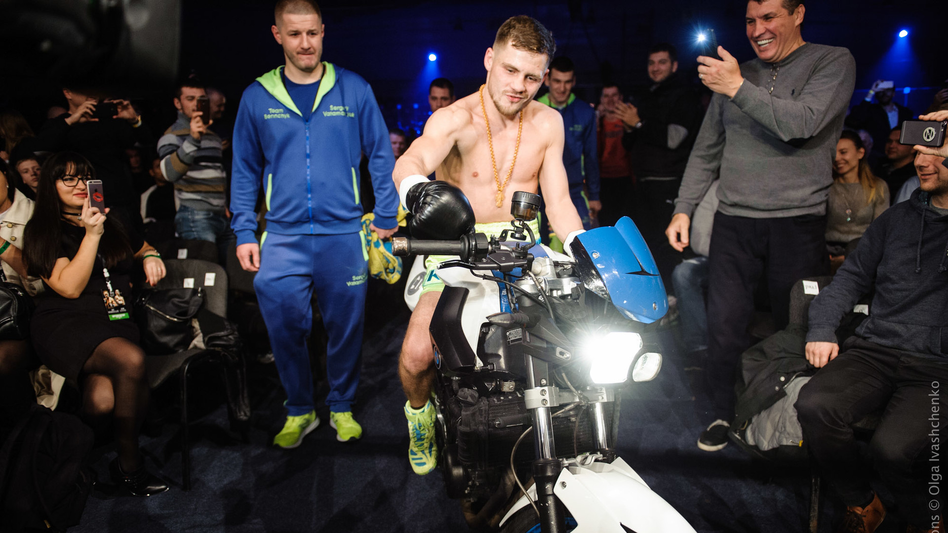 У другому за значимістю поєдинку вечора срібний призер Олімпіади в Лондоні Денис Берінчик зустрічався з іспанцем Хуаном Окурою і зумів перемогти одноголосним рішенням суддів, не зумівши відправити опонента в нокаут за вісім раундів. При цьому до рингу перед стартом бою український боксер пересувався на мотоциклі. Тепер в активі Берінчика п'ять перемог на професійному рівні, з яких три - нокаутом.
