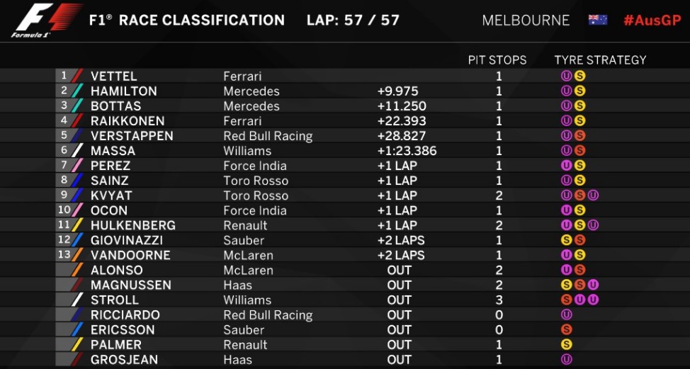 Сьогодні, 26 березня, відбулася перша в сезоні гонка Формули-1 - Гран-прі Австралії. Перемогу святкував Себастьян Феттель з "Феррарі", який впевнено обійшов фаворита в особі Льюїса Хемілтона.