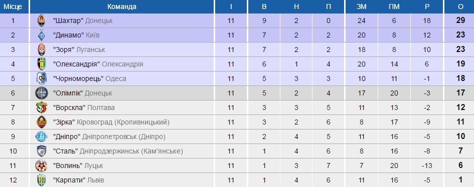 15 і 16 жовтня відбулися матчі одинадцятого туру української Прем'єр-ліги - останнього в першому колі. За його підсумками "Шахтар" зберіг відрив від "Динамо", "Зоря" наздогнала киян, а "Олександрія" вийшла на четверте місце.