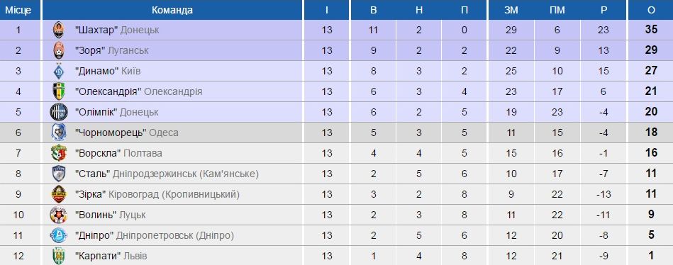 29 і 30 жовтня відбулися матчі тринадцятого туру української Прем'єр-ліги.